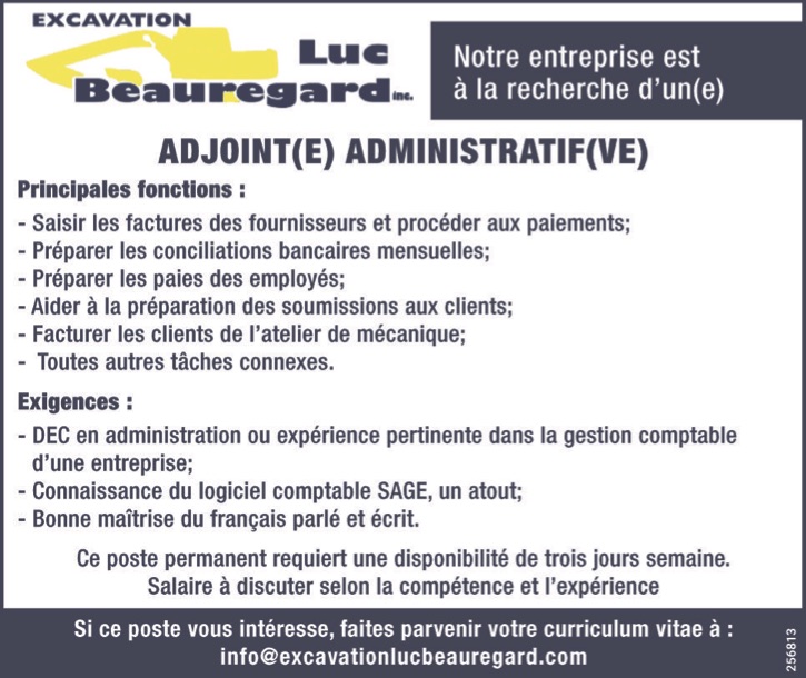 Si ce poste vous intéresse, faites parvenir votre curriculum vitae à info@excavationlucbeauregard.com