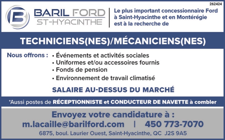 Le plus important concessionnaires Ford à Saint-Hyacinthe et en Montégérie est à la recherche de